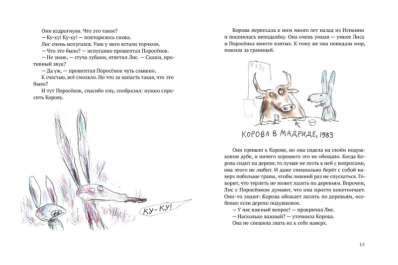 В первой книжке из серии историй о Лисе и Поросёнке мы знакомимся с ними и с другими удивительными персонажами. А кажется, что мы знакомы уже давно: с места в карьер, с первой же страницы, мы отправляемся с героями на поиски кукушки, которая исполняет любые желания, скачем верхом на королевской плюгавой, спасаем урожай редиски от вредной акулиски — грозы огородов, ищем драгоценные лисумруды и поросяхонты и притворяемся французским зелёным жаворонком, чтобы раздобыть йогурт с дыней.