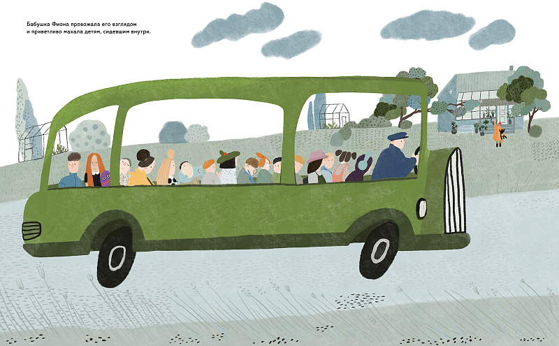 Это школьный автобус вёз учеников на первый урок. Бабушка Фиона провожала его взглядом и приветливо махала детям.