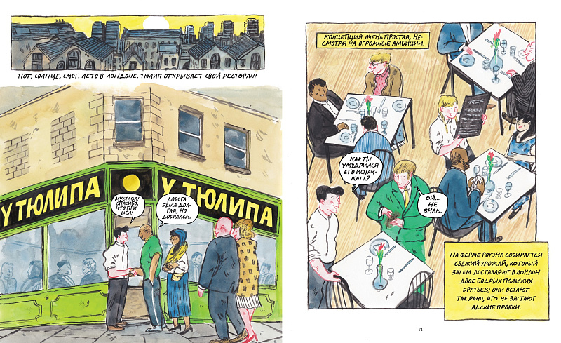 <p> Братья Тюлип и Роуэн неожиданно получают наследство и решают покинуть отдалённый шотландский остров, чтобы исполнить заветную мечту — открыть ресторан в Лондоне. Роуэн будет выращивать органические овощи на идиллической ферме в пригороде, а Тюлип возьмёт на себя все хлопоты, связанные с открытием ресторана. Однако прорваться в безжалостный и высококонкурентный мир высокой кухни оказывается непросто… пока братья не натыкаются на новый вид невероятно вкусных грибов. Это открытие привлекает в ресторанчик толпы клиентов и приводит его к успеху, о котором Тюлип и Роуэн и мечтать не смели. Чтобы угодить публике и инвесторам, Тюлип отчаянно пытается раскрыть секрет выращивания необычных грибов. Как далеко он готов зайти, чтобы удовлетворить свои ненасытные амбиции? Сможет ли он пожертвовать идеалами, честью и даже отношениями с собственным братом ради достижения своих целей? </p> <p> «Деликатес» — захватывающий комикс от одного из самых многообещающих шотландских художников, в котором переплетаются мир высокой кухни, амбиции и чудовищные секреты. </p> <p style="text-align: right;"> <i>Лихо закрученный сюжет и прекрасная графика не позволят вам оторваться от книги ни на минуту и приоткроют сложности и противоречия мира гастрономии, а финал и вовсе заставит округлить глаза от удивления!</i><br> Андрей Шмаков, бренд-шеф ресторана Savva и отеля «Метрополь» </p> <p style="text-align: right;"> </p> <p style="text-align: right;"> <i>Яркая, тонкая сатира на мир высокой кухни. Удовольствие от первой до последней страницы.</i><br> The Guardian </p>