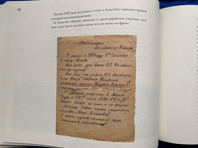 Книга о Никите Шкловском, сыне писателя Виктора Борисовича Шкловского, погибшего в самом конце войны, в 1945 году в возрасте 21 года. Книга основана на материалах семейного архива, который был любовно собран матерью Василисой Георгиевной и сохранен сестрой Варварой Викторовной. Книга ценна своей живой документальностью, она дает возможность современным детям увидеть, чем жили такие же мальчики и девочки, как они, девяносто лет назад.