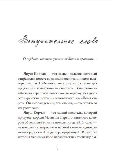 Так считал Януш Корчак — врач, учитель, писатель, «неуклюжий воспитатель», который «в лапту играть не умеет, но он пишет книжки, и ему кажется, что он очень умный». Он не старался оградить детей от несправедливости взрослого мира, но показывал им, каким этот мир может стать, если дети станут другими взрослыми.