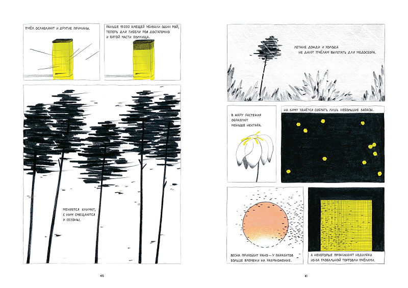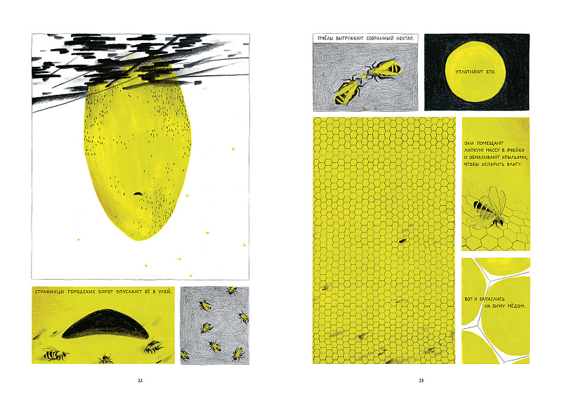<p> Благодаря пчёлам мы получаем треть всей пищи. Эти любительницы ароматных цветов могли бы подарить нам рай, где текут молочно-медовые реки. Но бетонные пустыни, монокультуры и климатический кризис угрожают пчёлам, биоразнообразию, а значит, и всей нашей экосистеме. Если мы продолжим истощать и разрушать мир природы, который формируют и поддерживают насекомые, то приблизимся к будущему, полному лишений. Как же сберечь наш дом? </p> <p> В поэтичных иллюстрациях Ханна Хармс показала хрупкий мир насекомых. А в послесловии специалист по пчёлам, профессор и доктор наук Юрген Тауц рассказал о ситуации в более глобальном контексте </p>