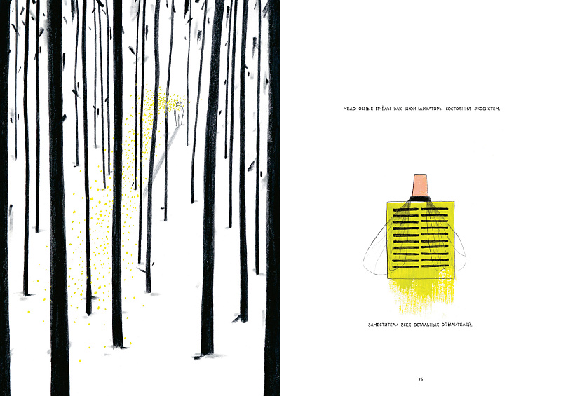 В поэтичных иллюстрациях Ханна Хармс показала хрупкий мир насекомых. А в послесловии специалист по пчёлам, профессор и доктор наук Юрген Тауц рассказал о ситуации в более глобальном контексте