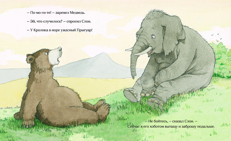 Прискакал однажды Кролик к себе домой. И вдруг из норы послышался громкий голос:<br> - Я Огромный прыгуар,<br> страшный, как ночной кошмар!<br> На помощь Кролику приходят друзья: Кошка, Медведь и Слон. Но все они отступают перед невидимым чудищем… Кто же он такой, этот загадочный и могучий Прыгуар?<br> Новая сказка для чтения вслух всемирно известного классика детской литературы Джулии Дональдсон оживает в рисунках известной художницы, лауреата многочисленных премий Хелен Оксенбери.<br>