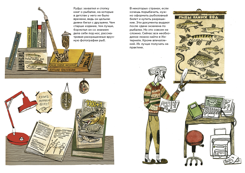<p> Руфус живет в городе, но каждый раз ждет не дождется момента, когда можно будет отправиться на рыбалку. Еще бы: в этом деле он большой мастер и готов поделиться с тобой своими секретами!<br> <br> Как привязать крючок? На какую приманку ловить окуня и что предпочитает карп? Можно ли целовать рыбу? Как сделать мушку для рыбалки нахлыстом? Изучи советы опытного рыбака Руфуса — и поймай свою первую рыбу!<br> <br> Это вторая книга про Руфуса — настоящего походника и любителя природы.<br> </p> <ul> <li>Книга для тех, кто любит отдых на природе и хочет стать настоящим рыбаком.</li> <li>Информация подана легко и с юмором.</li> <li>Сочетание увлекательной истории и практических советов.</li> <li>Есть вторая книга про Руфуса – «Руфус в лесу».</li> </ul> <p> </p> <ul> </ul> <ul> </ul> <ul> </ul>