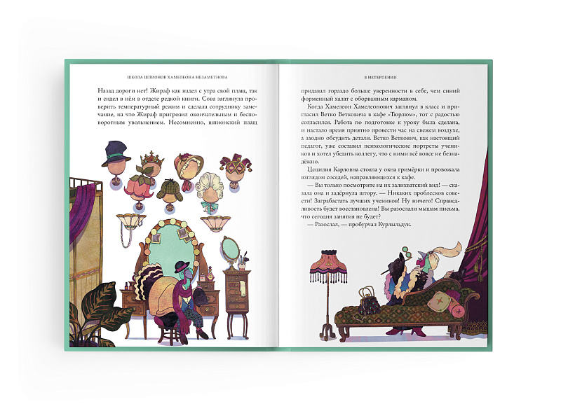 Когда в твоём городе открывает набор учеников школа шпионов, разве можно заниматься чем-то другим? Так подумали одновременно кот Апельсин, Утка-Мандаринка, Белая Ворона, Павлин, Жираф и Тигр. Их педагогу Хамелеону Хамелеоновичу Незаметнову предстоит сделать из этих ярких личностей умельцев прятаться у всех на виду, вести себя тихо, уметь слушать и слышать. Как назло, в учебный процесс вмешивается таинственное дело, которое срочно нужно расследовать: кто-то хочет сорвать карнавал! Главный праздник в городе! Вот и работа для новобранцев школы шпионов!<br> <br> Весёлая приключенческая книга детской писательницы Юлии Симбирской — о том, что талант прорастёт на любой почве, и о том, что даже в самом серьёзном деле иногда нужно от души посмеяться!<br> <br> Иллюстрации Марии Некрут.