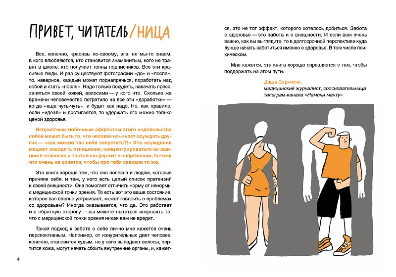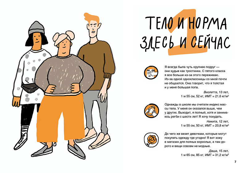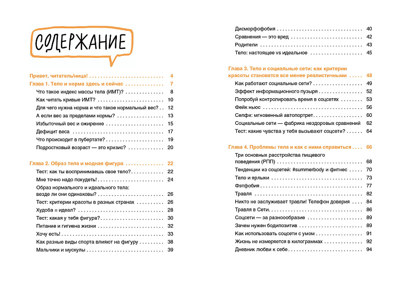 У всех есть представление, как должно выглядеть твоё тело. А лучший способ бороться с чужим мнением, страхами и стереотипами — это знать, как устроен организм и что нужно именно тебе. В этой книге ты узнаешь: для чего нужна норма и что такое нормальный вес? Что происходит в пубертате? Что такое расстройство пищевого поведения? Проблемы тела и как с ними справиться? Как работают социальные сети и как они влияют на наше поведение и настроение?